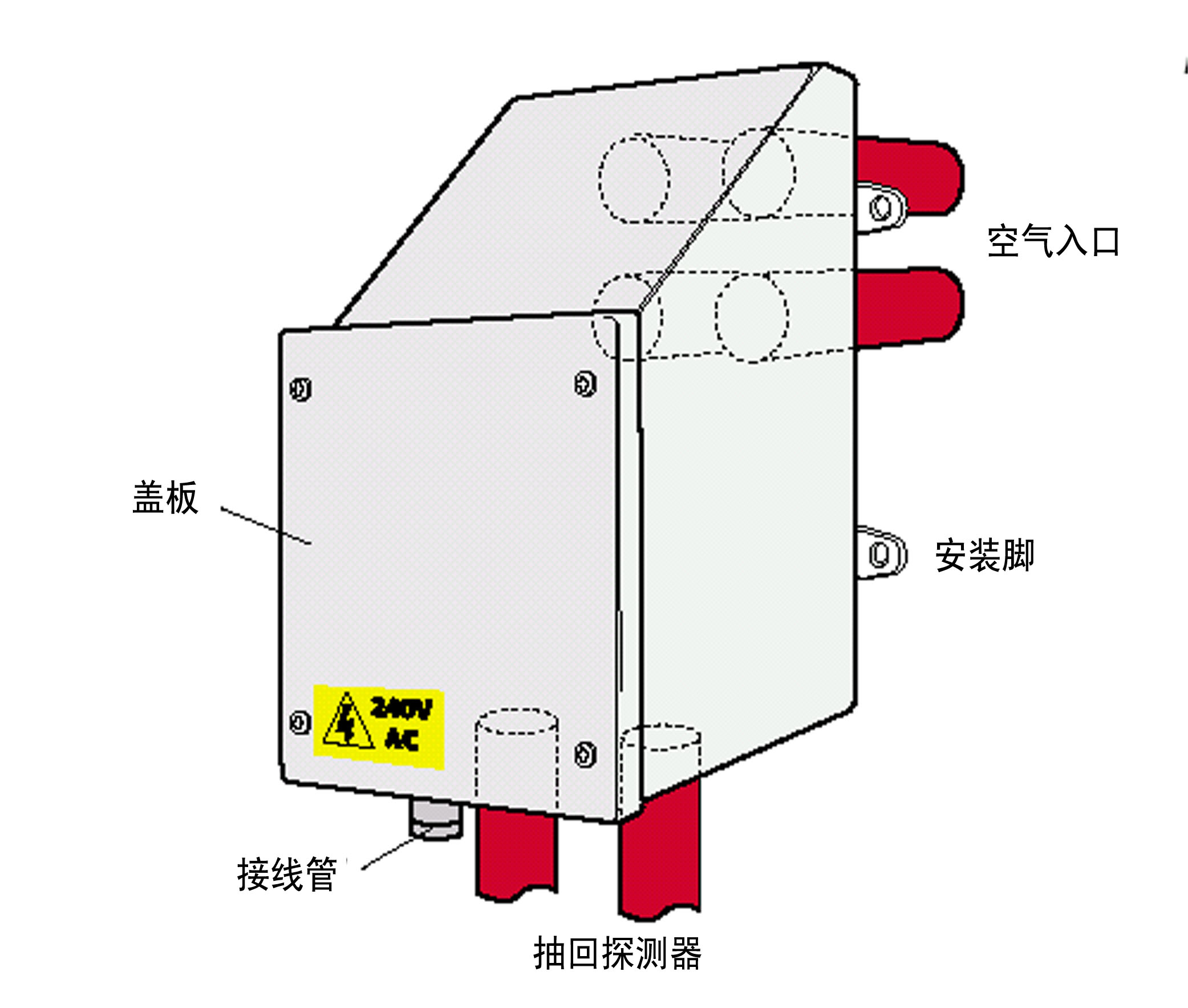 如果沒(méi)有維修空間,加熱器和GST空氣采樣式感煙火災(zāi)探測(cè)報(bào)警器都可以安裝在建筑物墻上的避免氣候影響的防護(hù)箱內(nèi)。